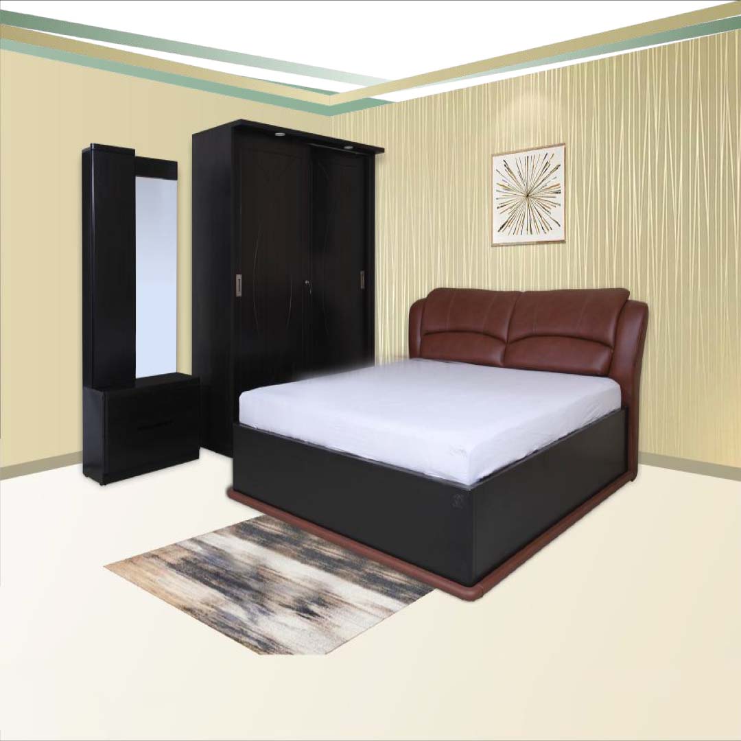 King Size Bed (7872) REGAL FULL HD 1900( W)x1200(H)x2100(D ) White+Grey Wardrobe 2 Door Myra W2D Sliding 1200( W)x2020(H)x730(D ) Dresser White+Grey Aaron D T 800( W)x1830(H)x430(D ) White+Grey